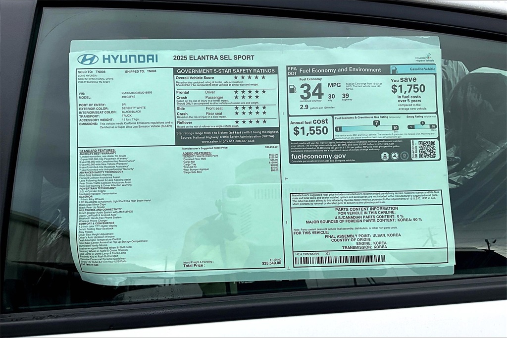 2025 Hyundai Elantra SEL Sport Serenity White Price includes: $1250 - Hyundai HMF Dealer Choice : $1250 discount. $44.32 per $1000 financed. Available to well qualified buyers who finance through Hyundai Motor Finance. H704. Exp. 09/02/2025